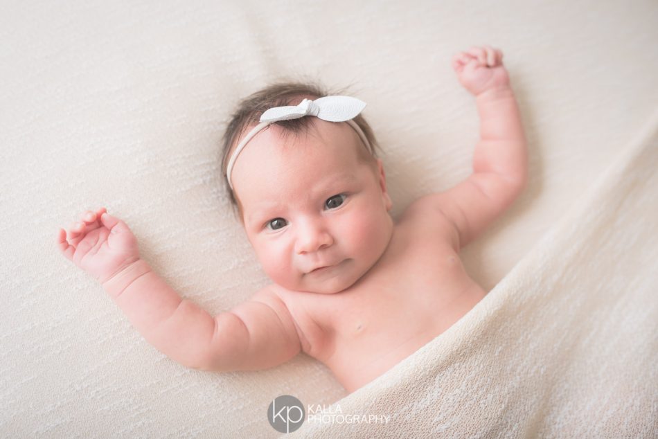 Baby E and her family came to the studio a few weeks ago for her newborn session. Baby E was one-month-old at the time of her session and was definitely not interested in sleeping. She is such a calm and bright eyed baby girl and was so cooperative for all of her photos.