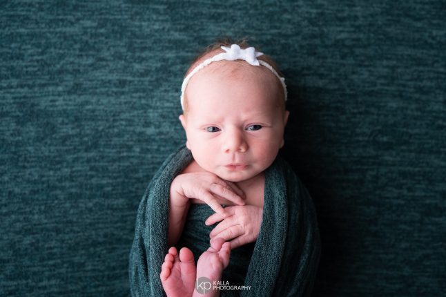 Baby F was in the studio last week for her newborn photo session. This beautiful girl slept through the first half of her session and then decided to show off her gorgeous eyes for the last half of the session.